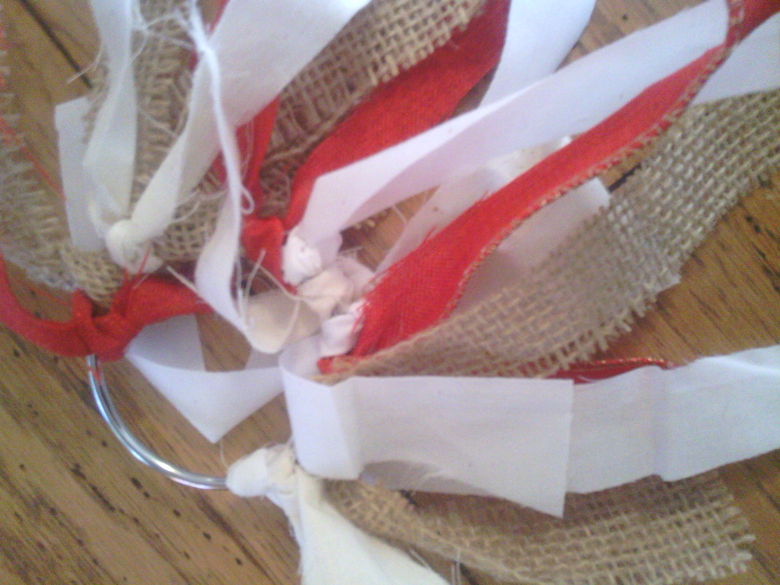 - Burlap and ribbon from the Burlap Garland on the tree and
