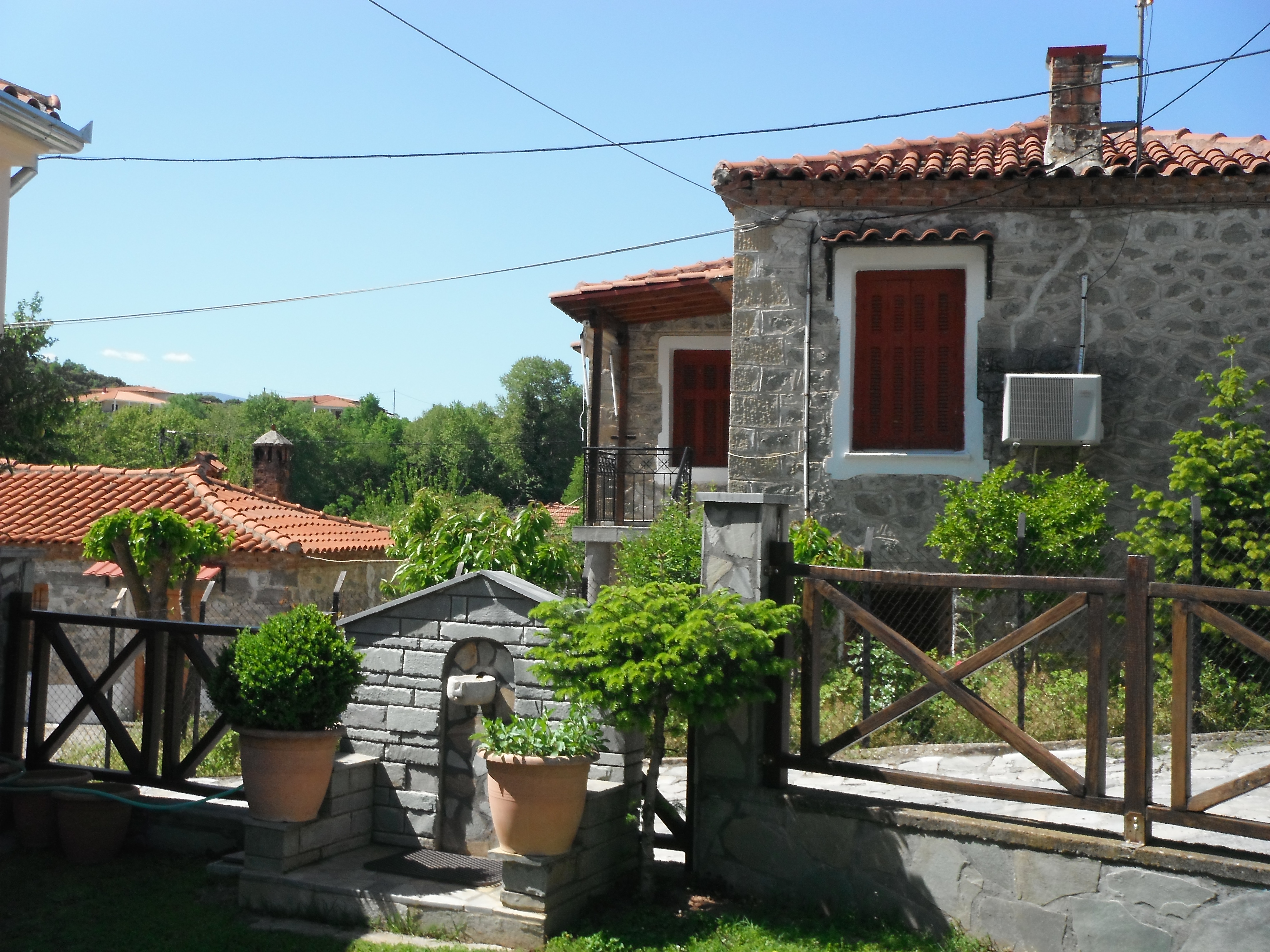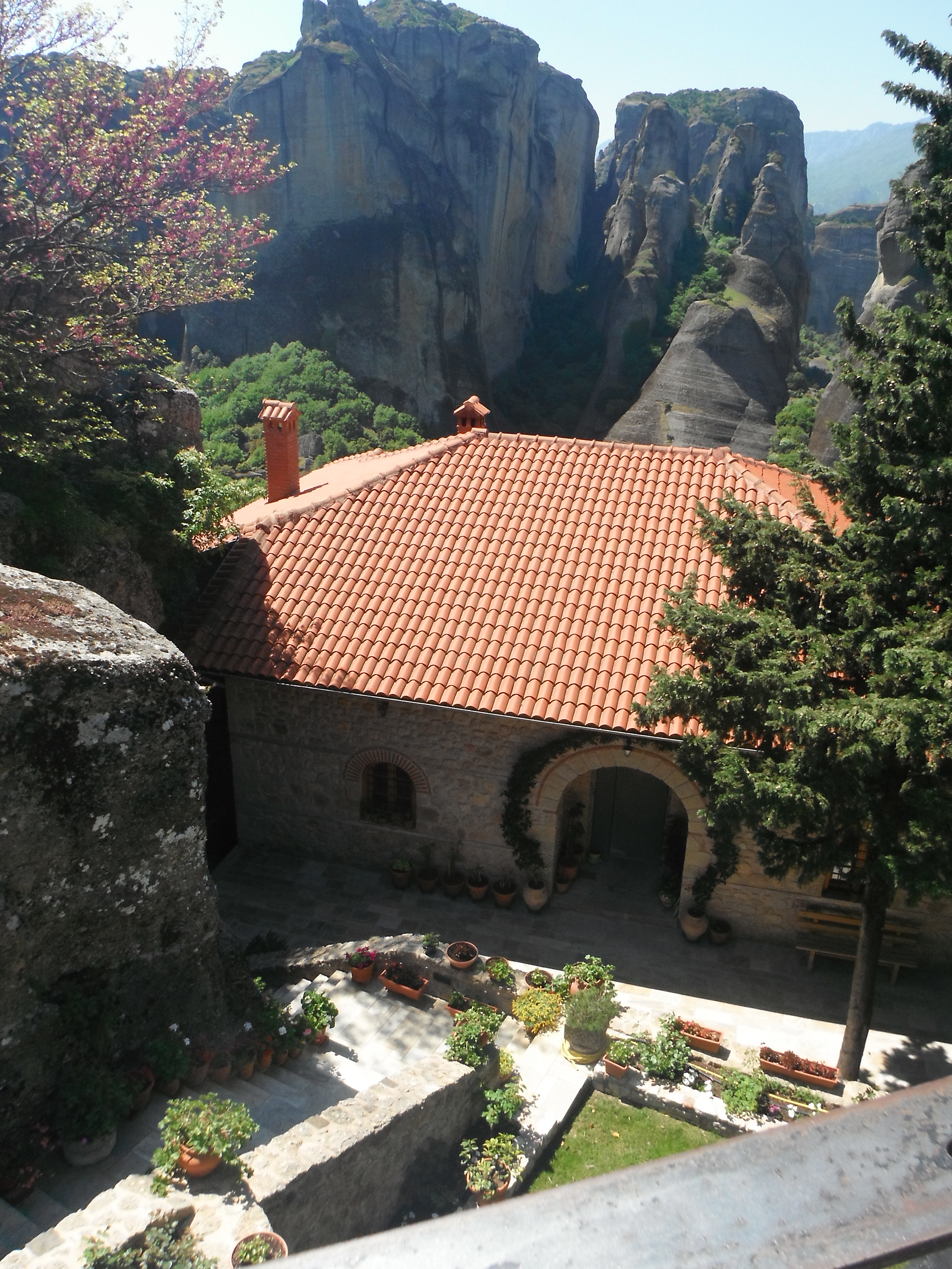 Guests can sit out on the lawn any time of day and stare at the rock towers and spot goats climbing way up high! Next door chickens cluck and tour busses occasionally drive past on their way up the hill toward the monasteries. Several Tavernas are within walking distance.