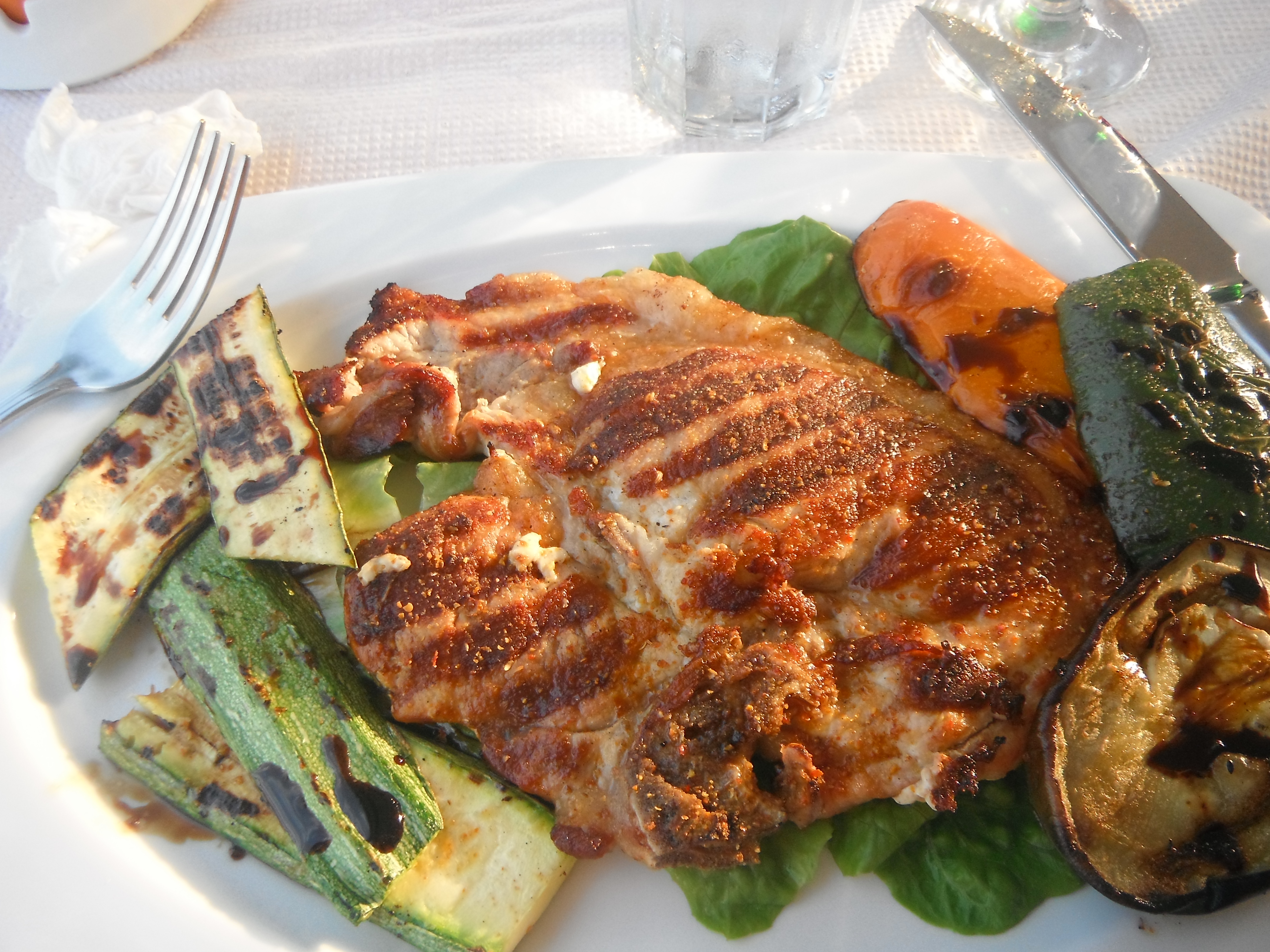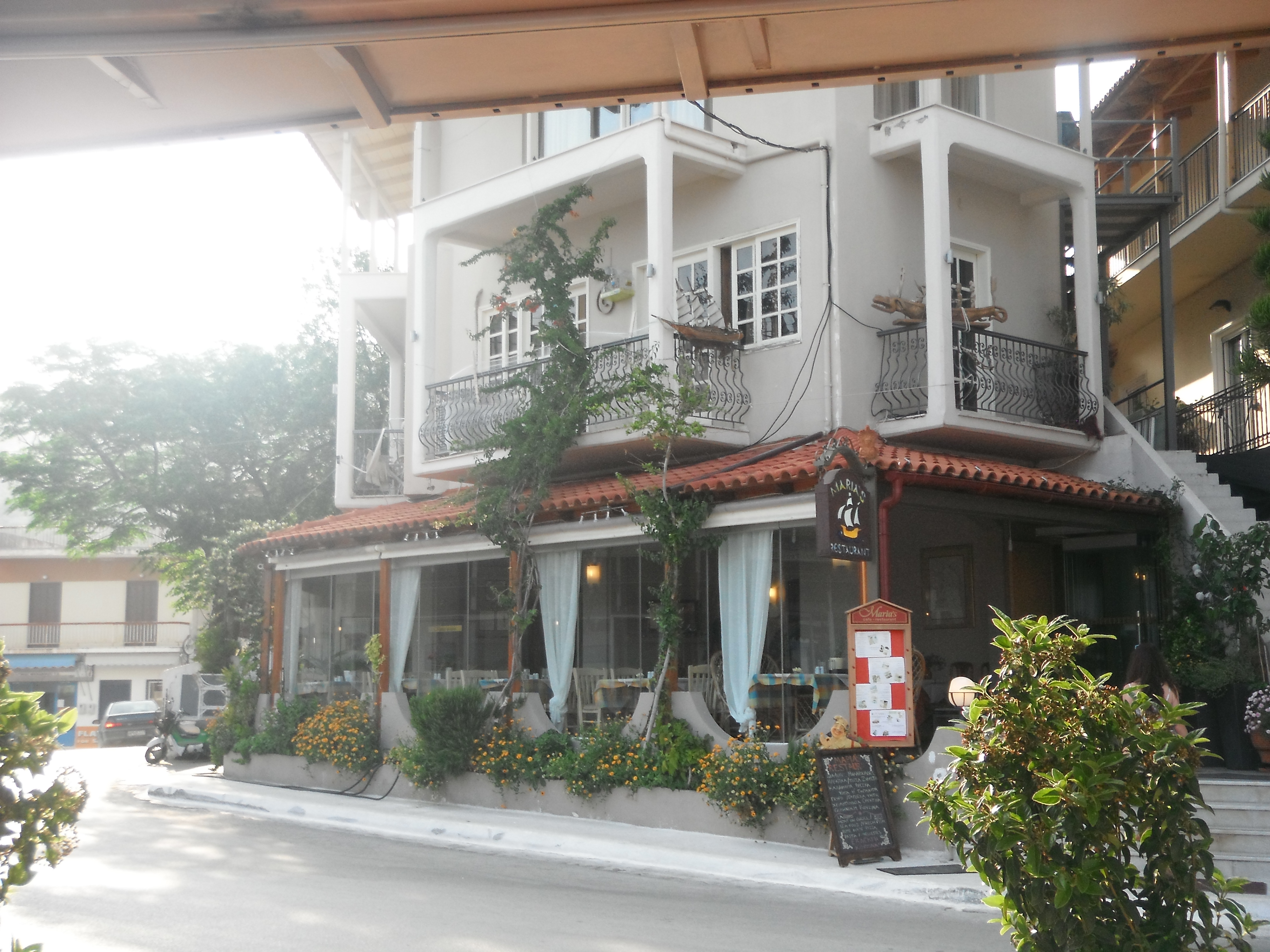 Lions?? During dinner our first evening, our friendly waiter told us a hilarious story. (Basically it went like this but he delivered it perfectly with his dry humor.) Some American girls who were dining in his restaurant during their recent visit, were excited and thrilled and giggling. When asked what the excitement was about, they replied, “Africa is right there!” (pointing to a small Greek island on the water)… to which he replied, “Yes…If you are real quiet at night, you can hear the lions.” There are so many nice eateries! Some evenings, we cook in our Bungalow and then go out for a coffee or glass of wine on the beach. Tavernas line the beach and if you wish you can feel the sand in your toes while you sip your beverage.