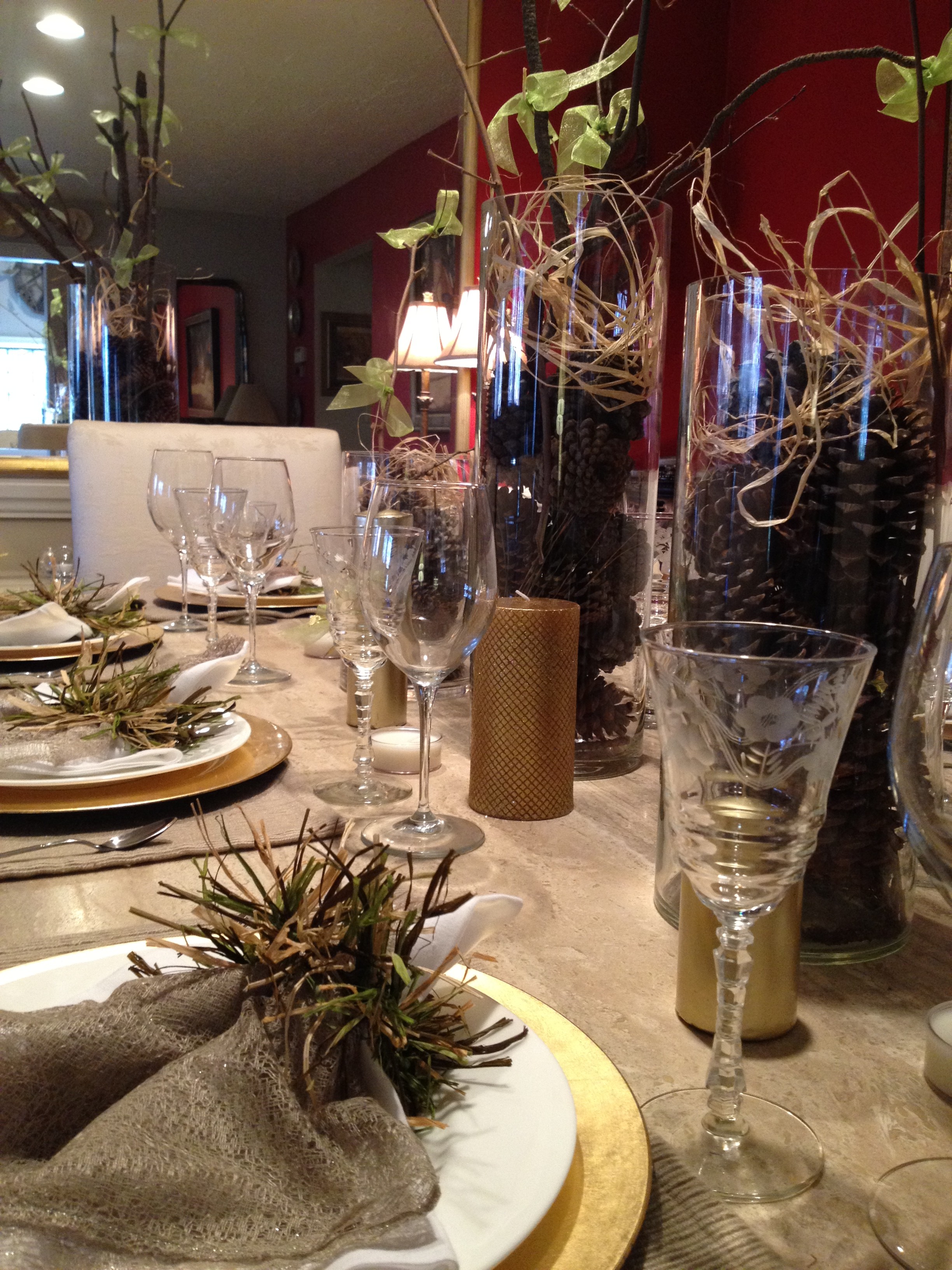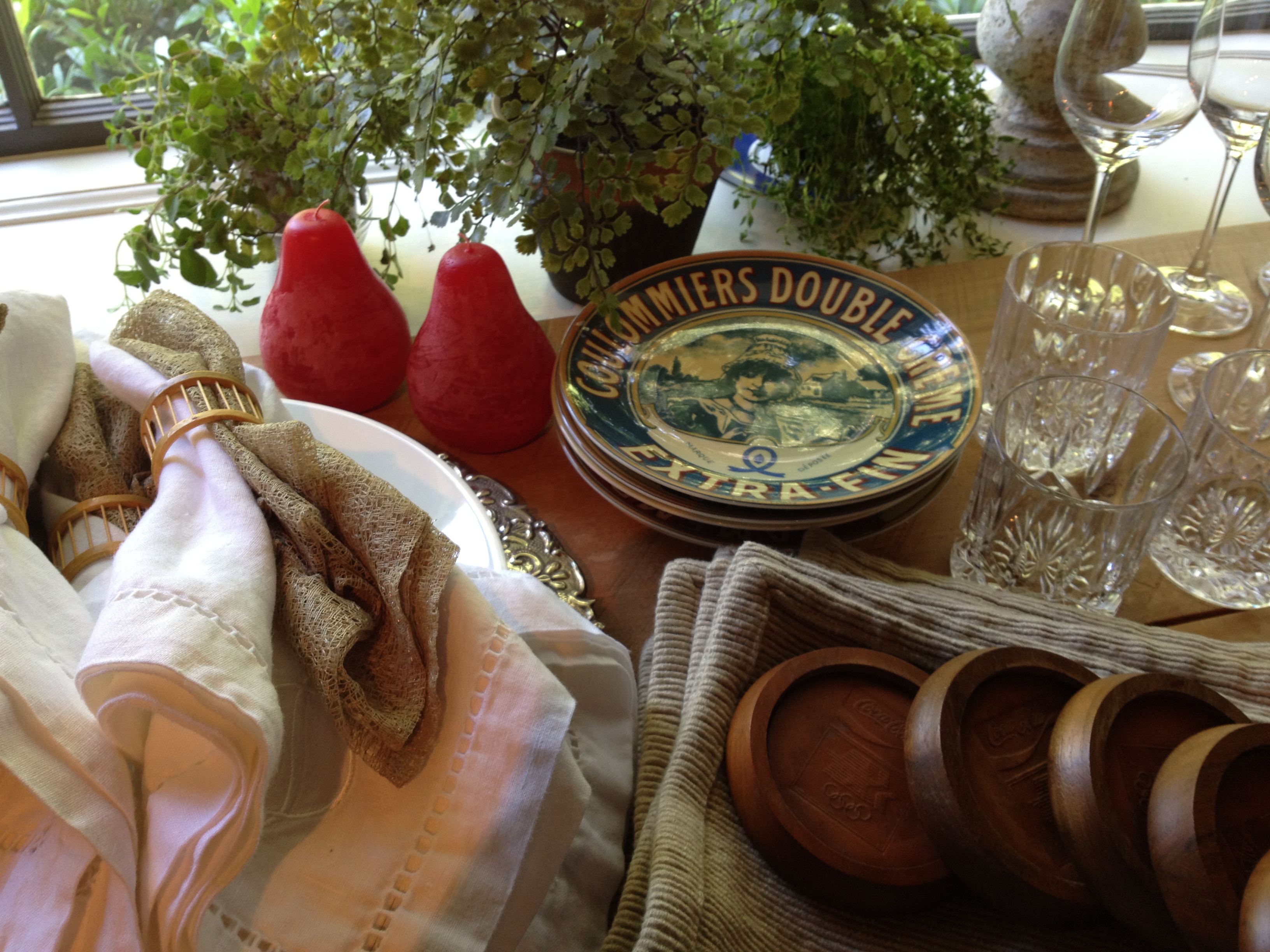 When it comes to entertaining, setting the table can make all the difference in setting the mood as well as how the food tastes. Does setting the table for guests intimidate you? Well, fear not! With my simple guidelines, you will be able to create the perfect Tablescape and it doesn’t have to cost a lot. I discovered these little techniques during our stay in Atlanta at Greg’s Mom’s. The girls and I have a blast playing in her Kitchen and Dining Room (not to mention reading all the great books)…Endless Inspiration! Sitting perfectly on her green piano, were these red pear candles. Every day they made me smile, so one night we used them for our Table Setting Inspiration. Sometimes its a pair of candles, sometimes it’s a piece of pottery… I know there are plenty of proper rules and guidelines and resources for How to Set the Table, but I just have One Basic Rule: Have Fun