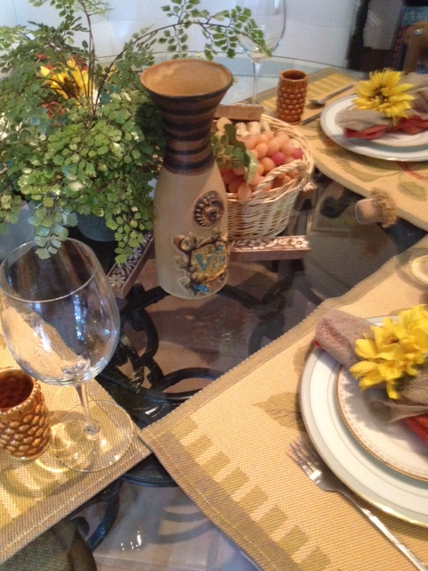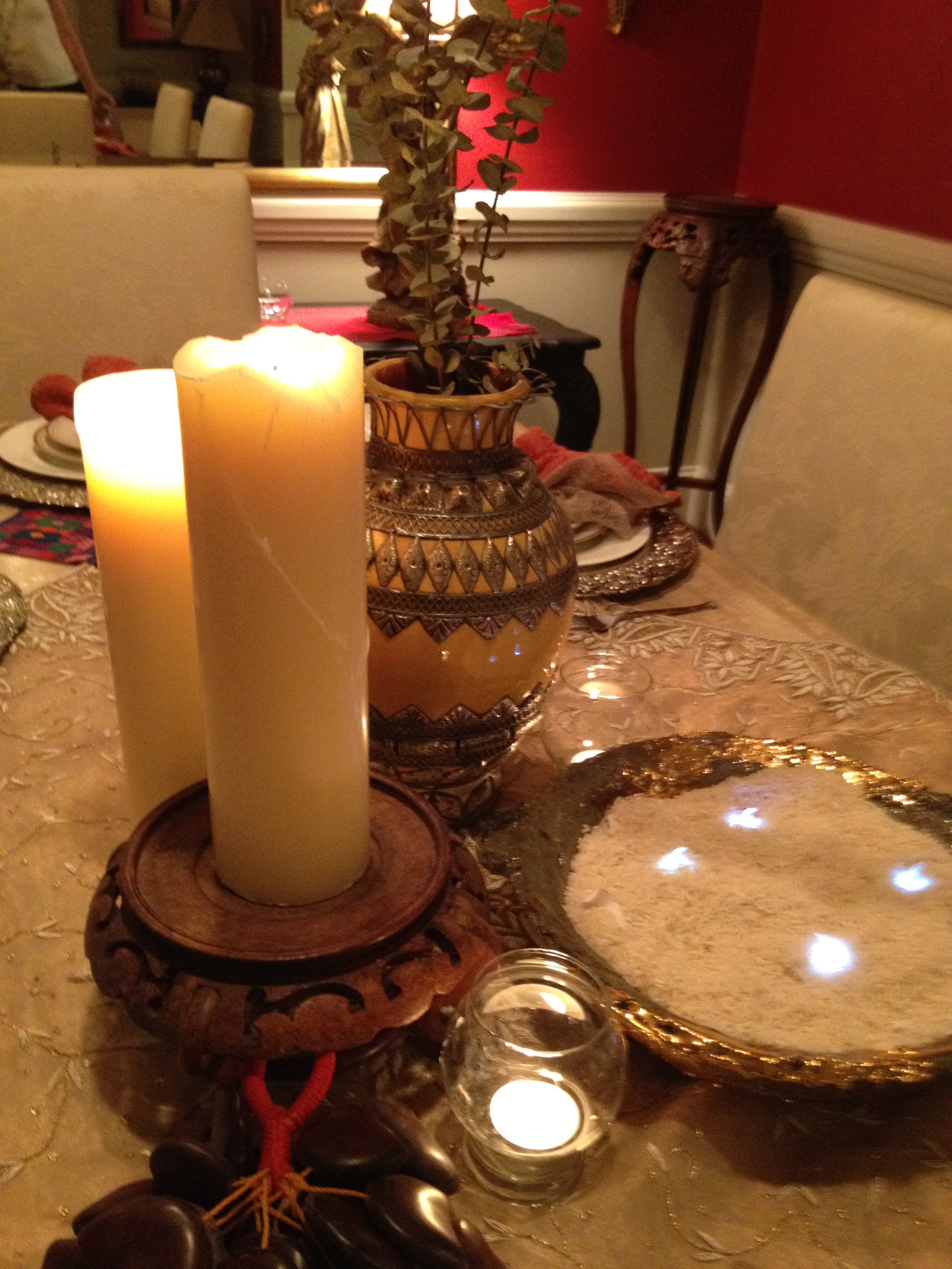Step 2: What kind of Theme is your food? Are you serving Thai? Moroccan? Greek? Southwest? Italian? Go on a Treasure Hunt: This may require raiding your Auntie Mame’s Attic, or your Mother-in-law’s African Inspired Powder Room…Or if you like junk, you may have picked up some weird trays recently at the flea market (What? Who does that?)